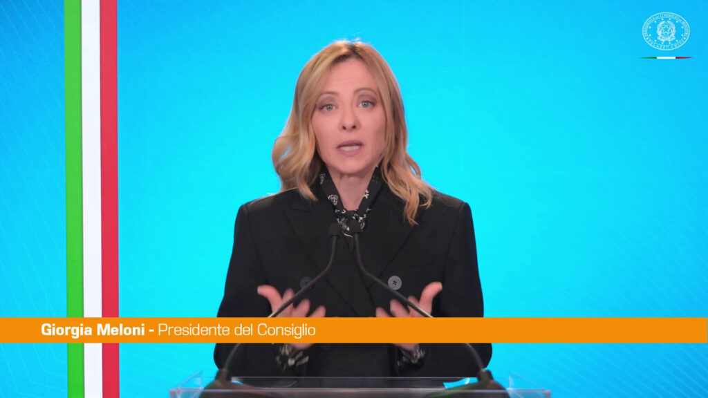 Così il Presidente del Consiglio Giorgia Meloni, nel video messaggio inviato ai partecipanti alla prima Conferenza dell’Italofonia, a Roma. tvi/mca3 (Fonte video: Palazzo Chigi)